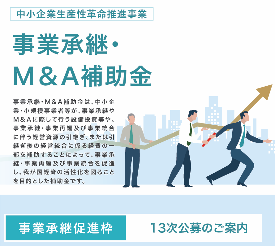 M&Aによって他社の経営資源を引き継ぐ中小企業が対象です。