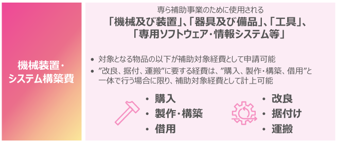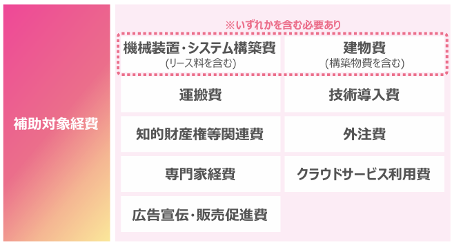 経費は幅広いですが、補助事業との直接性が厳しく問われます。汎用的な設備や既存補修は対象外です。