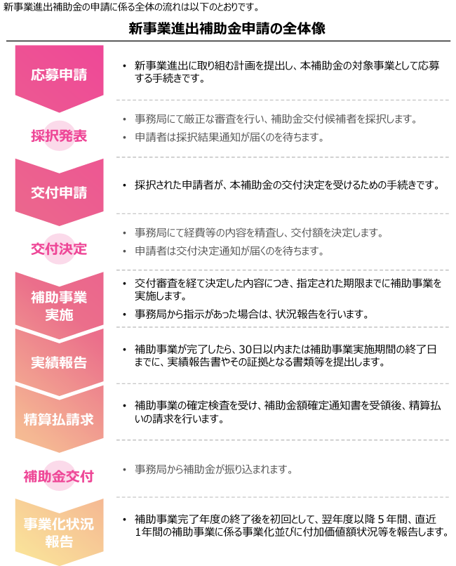 申請応募から、補助金交付までの流れは概ね以下のイメージです。