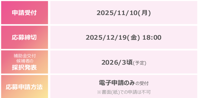 第2回公募は、11月10日申請受付開始、12月19日締切となっています。
